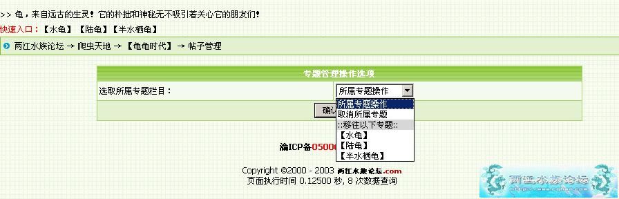 1。由于通过了总监、版主们的投票,论坛正在进行小版变专题的设置过程,各版主请把自己版内的相关主题移动到相关的主题中去。需要大家尽心管理。(操作方法见本贴 6楼和7楼)很简单!!!